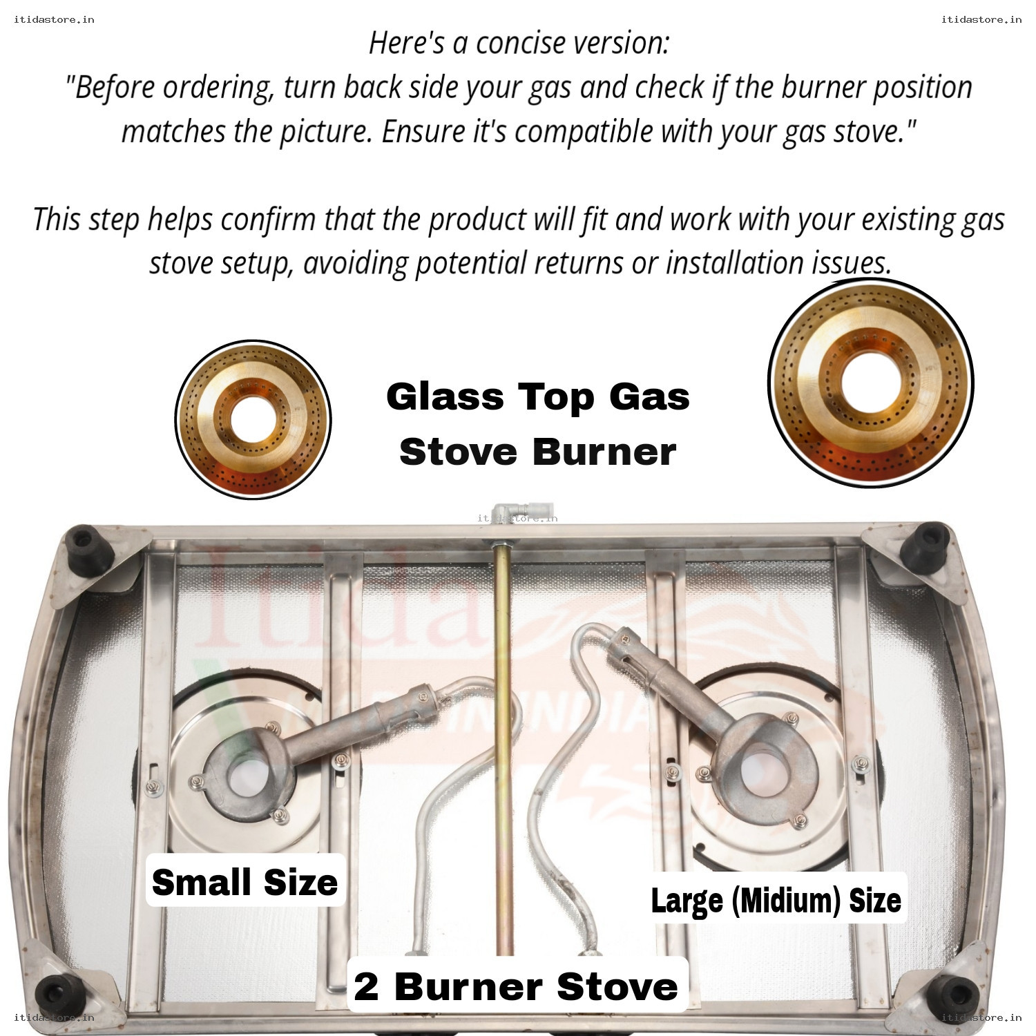 (Standard 2-burner glass top chulhon ke liye sahi hai jisme ek chhota aur ek medium burner hota hai. (Isme 1 Chhota + 1 Medium Cap hai).) - Replacement Top Lids: Ideal for replacing lost, rusted, or damaged burner caps to make your 2-burner stove look new again. (Note: ONLY Caps, not burners).