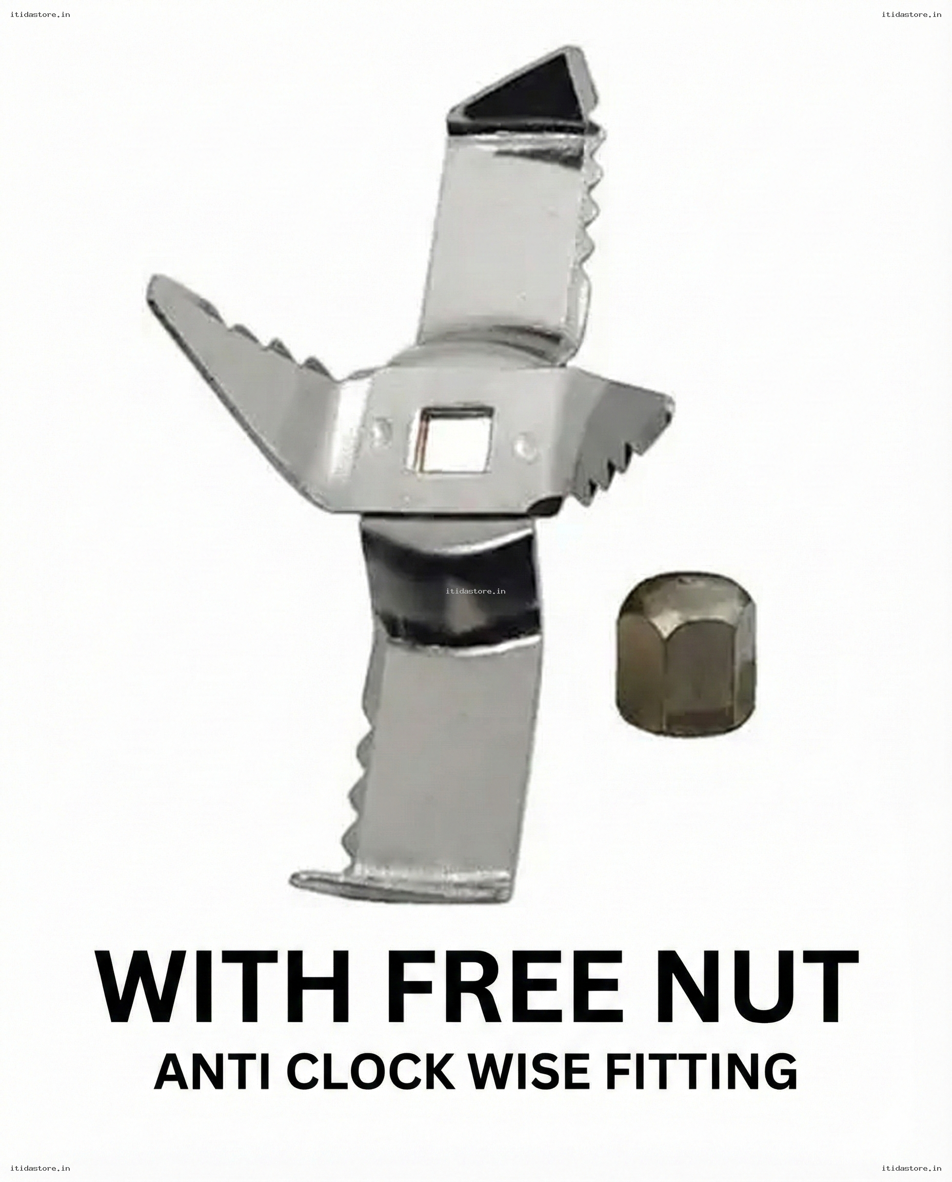 • Clockwise Rotation: Suitable for mixers that rotate in a clockwise direction. (Ye blade ghadi ki disha mein (Clockwise) ghumne wale mixers ke liye hai.)
