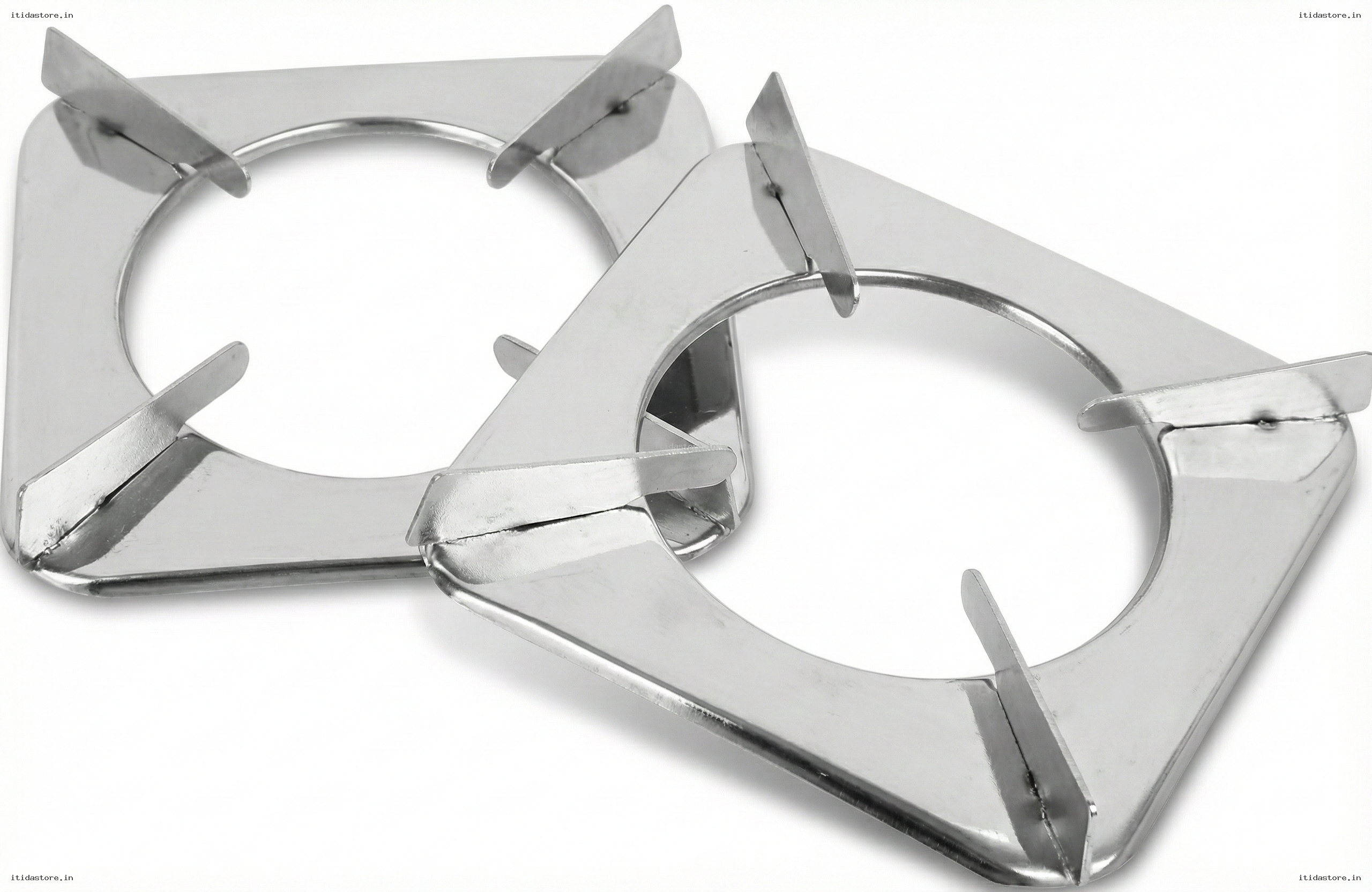 Square Steel Gas Stove Pan Support (Set of 2) – Heavy Duty Stand for Steel Body Stoves (21.5cm – 22cm Pin)