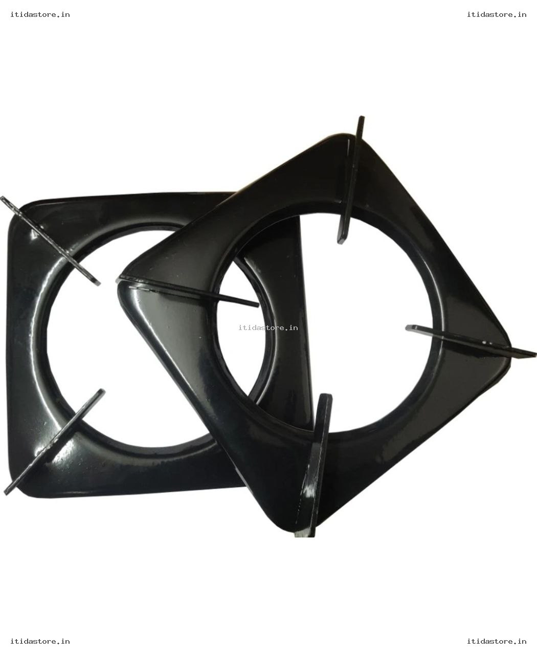(Bade gas chulhon ke liye design kiya gaya hai jinki pin ki doori 21.5 cm se 22 cm ke beech hai.) - Stable Square Design: The robust square shape provides a wide platform, preventing heavy utensils like pressure cookers from wobbling.