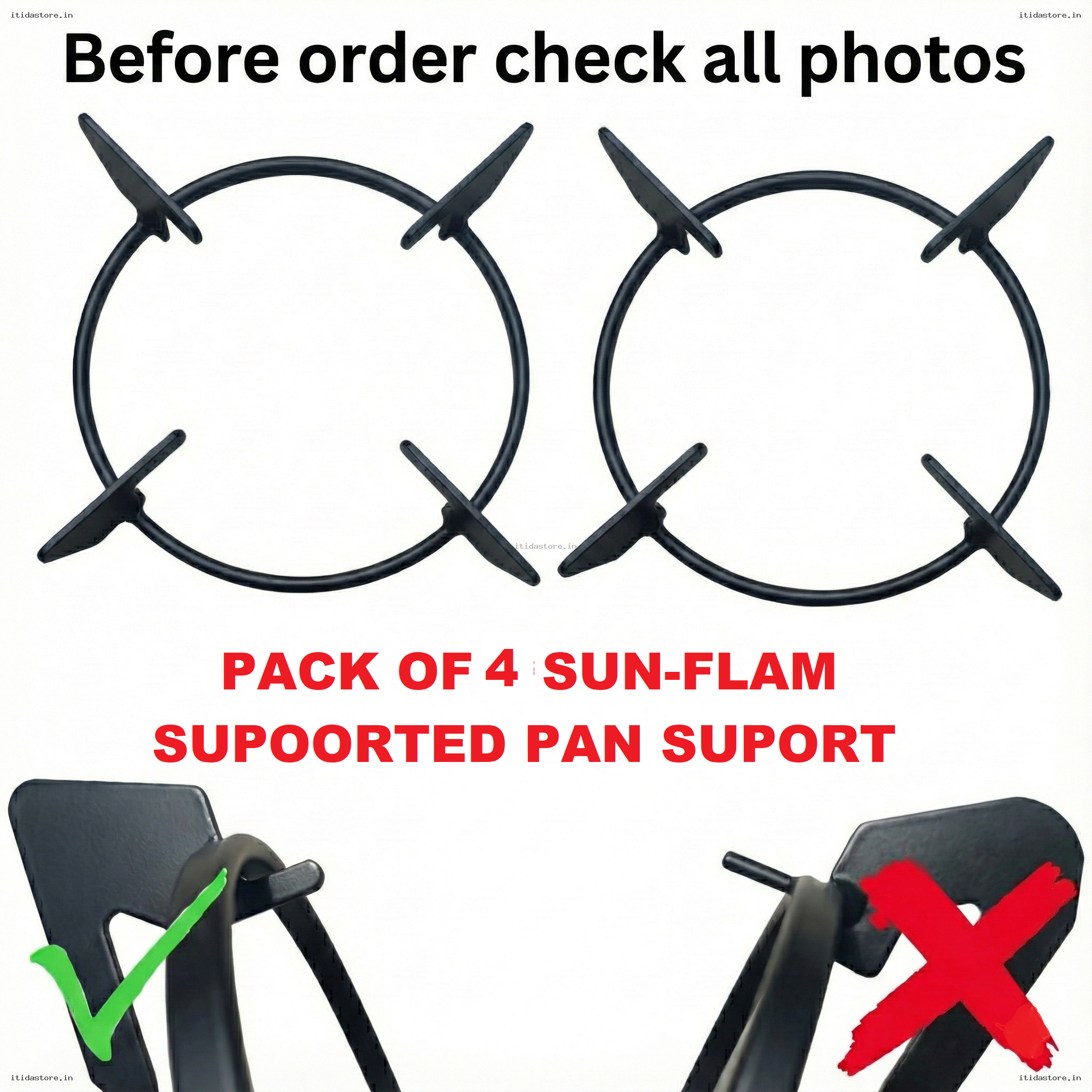 (Khaas Sunflame aur un chulhon ke liye banaya gaya hai jinke pin ki doori 14cm se 14.5cm hoti hai.) - Complete 4-Piece Set: A value pack of 4 stands, allowing you to refresh your entire 4-burner stove set at once.